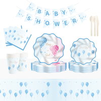 DAMAI Baby Gender Reveal Party Supplies Team Baby Paper Plates Napkins Disposable Baby Shower Tableware Decorations for 8 Guests